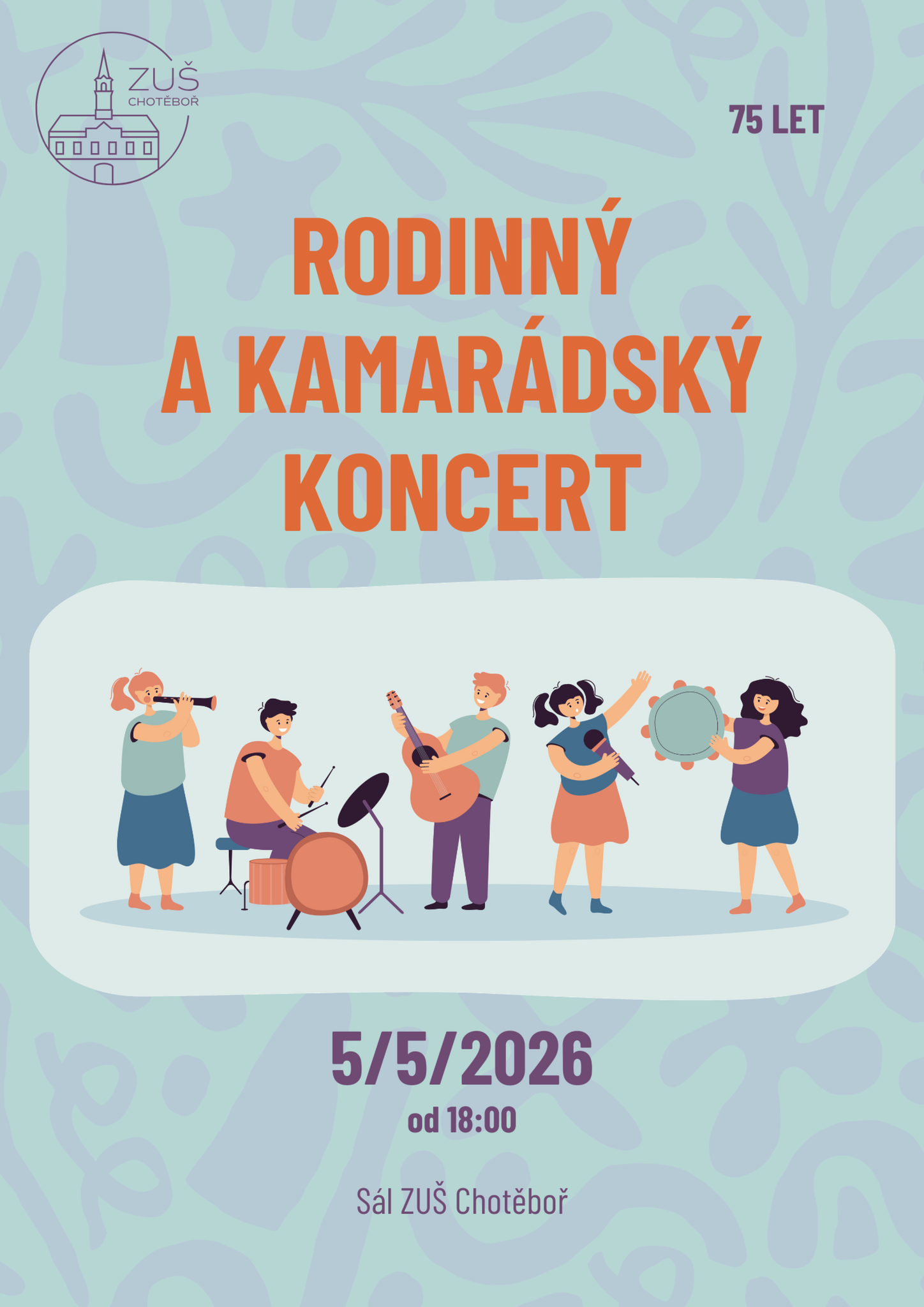 Zveme Vás v úterý 5. května 2026 na Rodinný a kamarádský koncert, který se koná v sále ZS Chotěboř od 18 hodin. Žáci školy vystupují s rodinami nebo kamarády. Možná se budete divit, kolik muzikantů kolem sebe máte a ani o tom nevíte.
